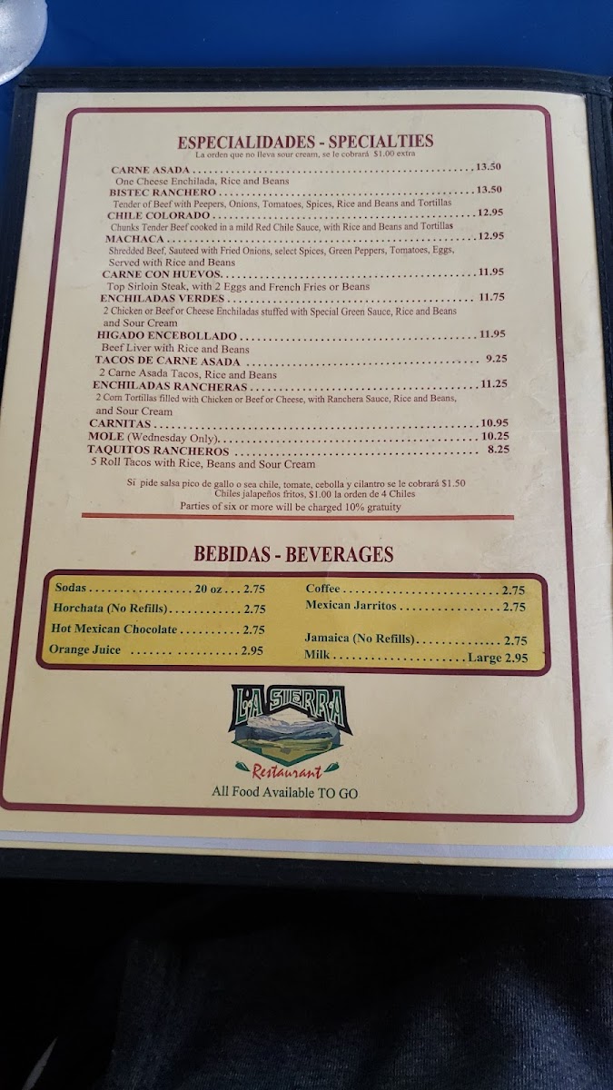 With an inviting atmosphere and friendly service, La Sierra Cafe makes you feel like family. The combination plates offer a fantastic way to savor multiple dishes, making every visit a unique culinary adventure. Whether reminiscing with loved ones or enjoying a meal solo, every bite carries a blend of tradition and warmth.